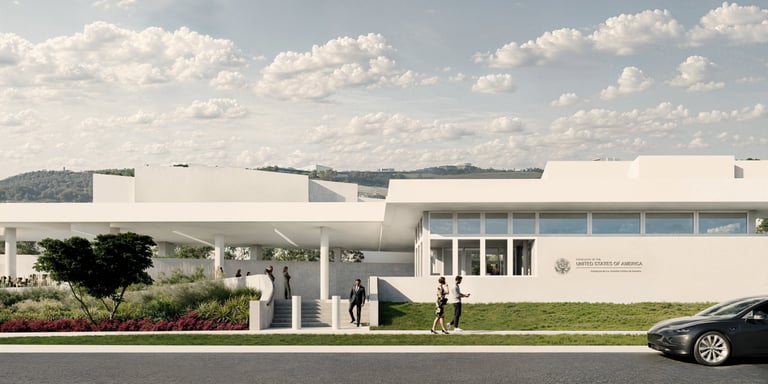 This project included security, access, and facility upgrades across the Embassy compound: enlarging the Consular Compound Access Control (CAC); constructing new restrooms outside the publicly accessible area; renovating the Main Compound Access Control (MCAC) and Service Compound Access Control (SCAC); developing a Compound Emergency Sanctuary (CES) to support warehouse, recreation, commissary, and mail functions; implementing Forced Entry/Ballistic Resistant (FE/BR) upgrades; and raising perimeter walls for enhanced security. Additional tasks included evaluating a new mail screening facility and separating the main vehicle gates at the mantrap.